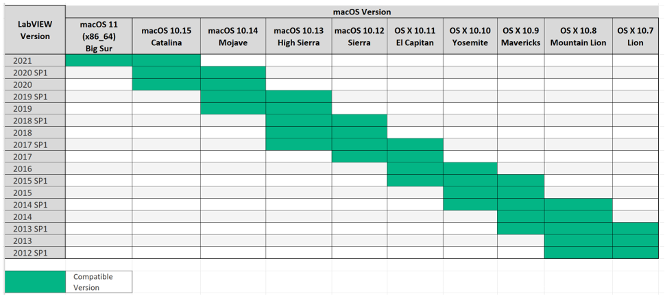 Considering the installation of LabVIEW on Mac OS, it is also important to know which Mac OS and LabVIEW versions are compatible with each other.